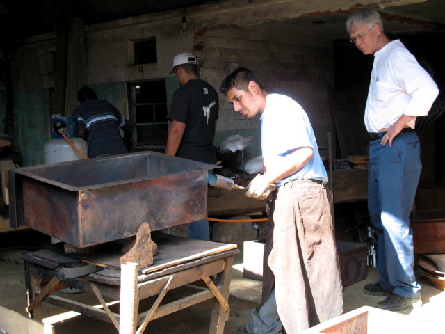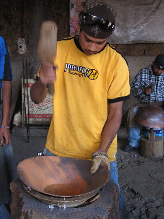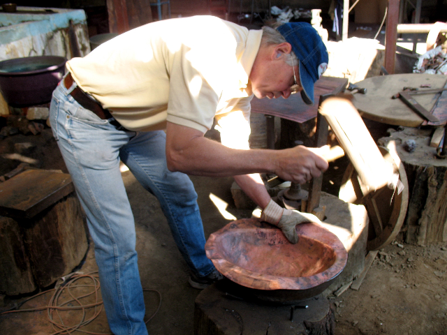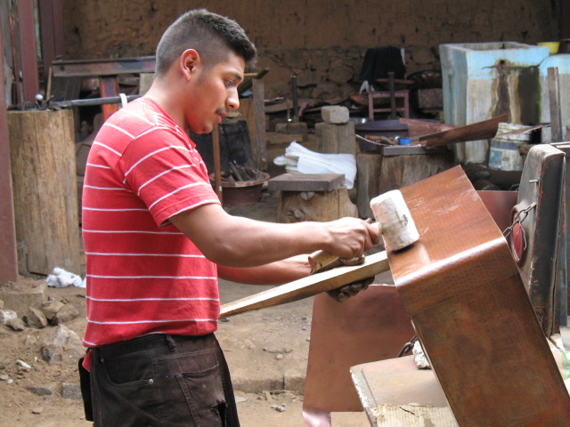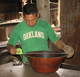 1. Our copper sinks are made in Santa Clara del Cobre, a town that has worked copper for 500 years. Here, there are thousands of copper artisans and 100 workshops; we work with two of the best, places with excellent equipment and well-run shops, safe and sensible places where skilled craftsmen can put the right amount of time and thought into each piece. These are the most advanced workshops, with exceptional control over key details. Every issue, from the quality and weight of the copper sheeting, to the fineness and regularity of hammering, the perfection of each weld, and the beauty of each patina application, has been carefully planned and executed, for years, by these artisans.